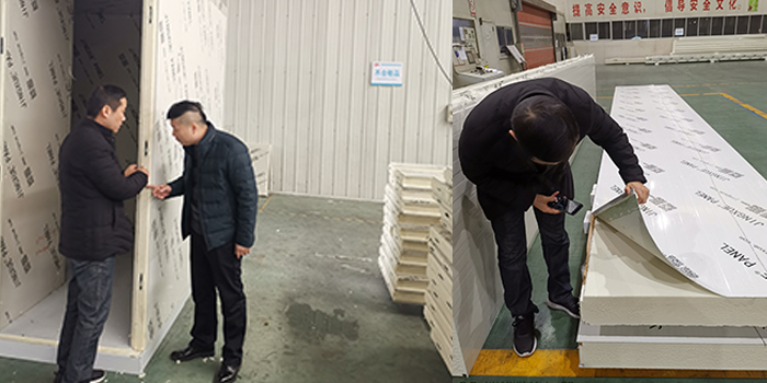 2018年12月19日,安徽鑫合機電設備有限公司溫總、解總一行到江蘇晶雪節能科技股份有限公司材料生產車間復核工程所需配套材料。